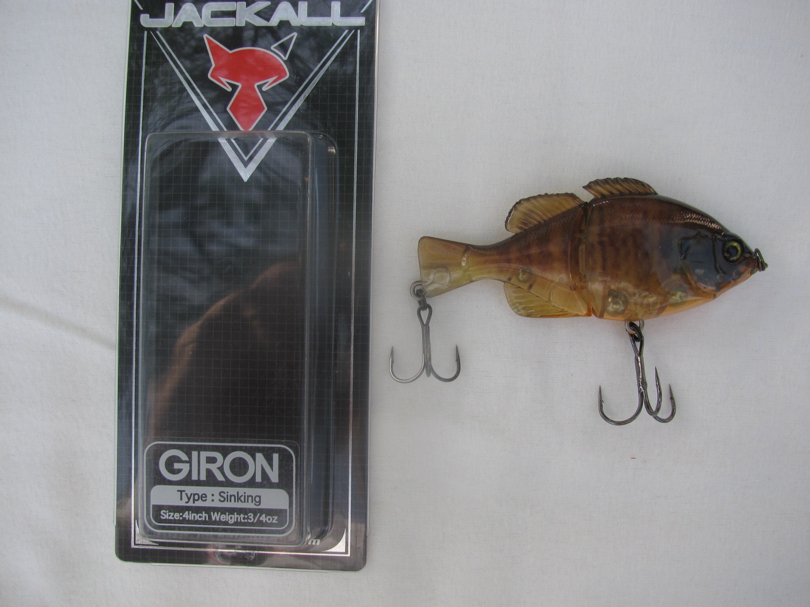The Giron is classified as a swim bait. It is listed at 4” in length but measures 3-3/4 on a ruler with a weight of 3/4 ounce. The shape of the bait is possibly the closest imitation to a bluegill on the market both in height, width and anatomically. Not to mention the colors which are executed beautifully.
