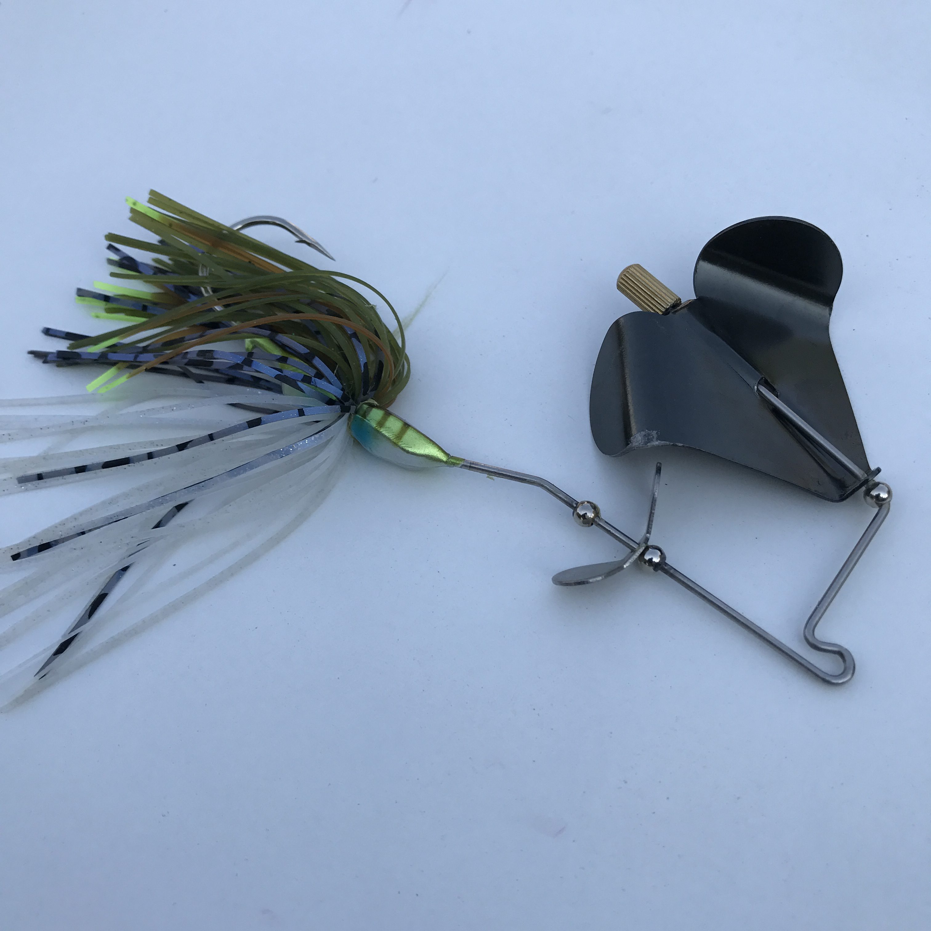 The Firecracker is named appropriately due to the extra prop that is placed under the main blade on the shaft. It makes contact with the big blade, which rotates clockwise, while the small prop rotates counter-clockwise. This produces a distinct clacking sound unlike other buzzbaits.