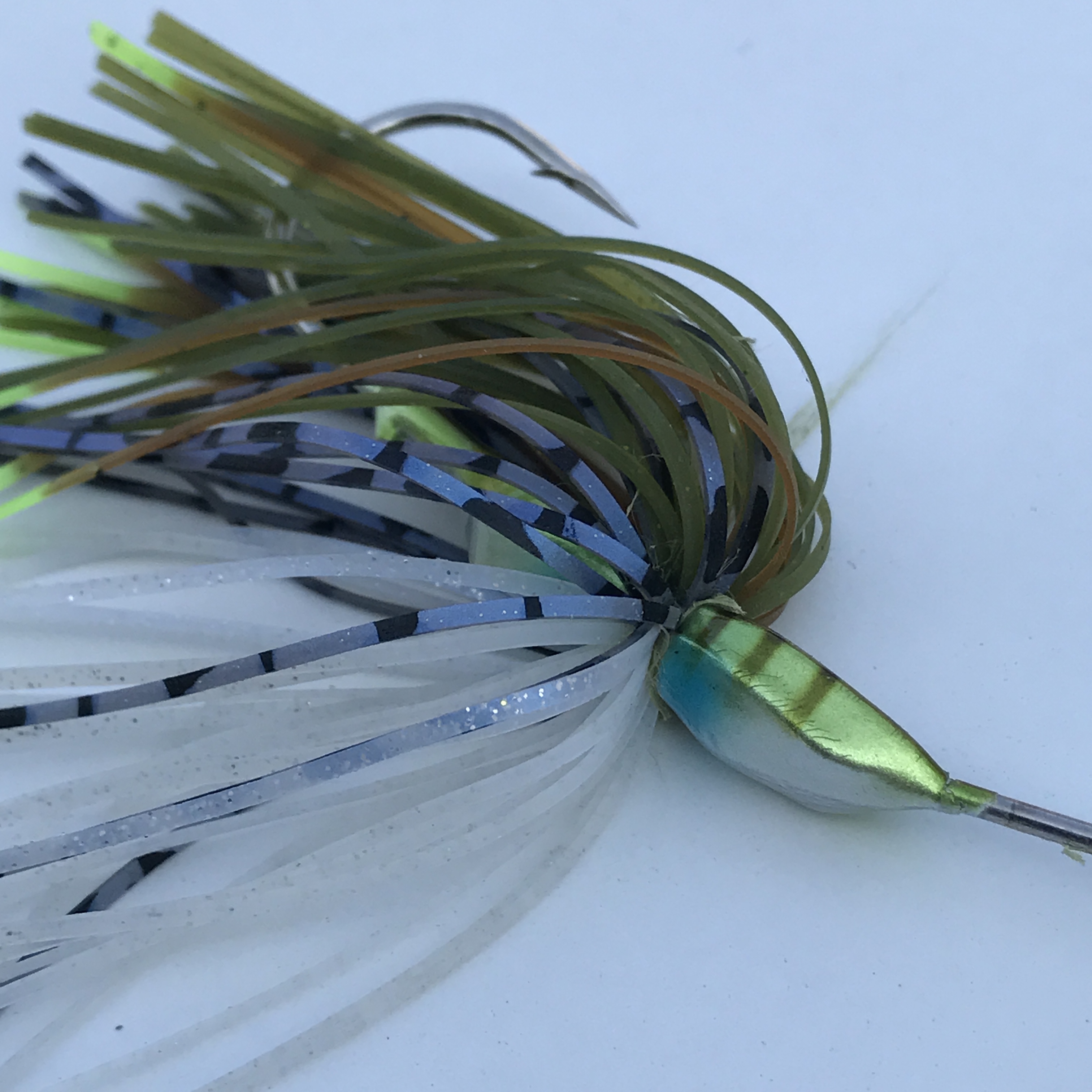 The skirt material has some nice color combinations and is high quality. The head has a nice design as well as a matching paint job so that the business end of the bait all matches. The hook is an Owner Cutting Point Hook that is sticky sharp out of the package and holds fish well.